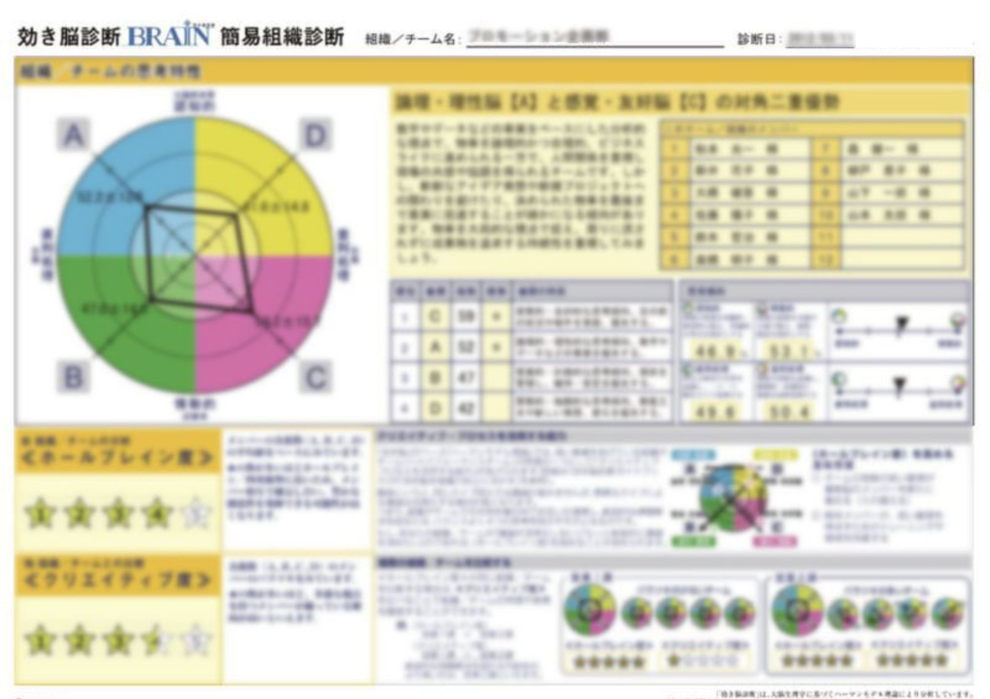 ★の数が多いほどホールブレイン/四 重優勢に近いため、メンバー相互で補完し合い、豊かな創造性を発揮できる