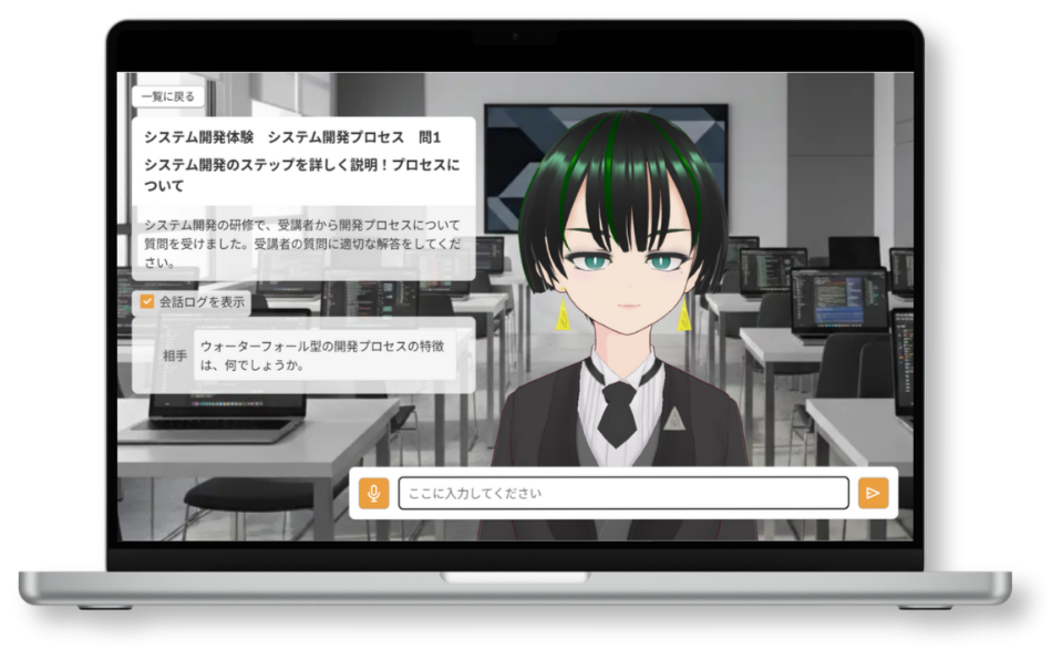 実務を想定したAIロールプレイで、「知識を使える力」に変換。AIが客観的にフィードバックして改善点を明確化し、現場で通用する実践力を養います。配属初日から頼られる即戦力へ。