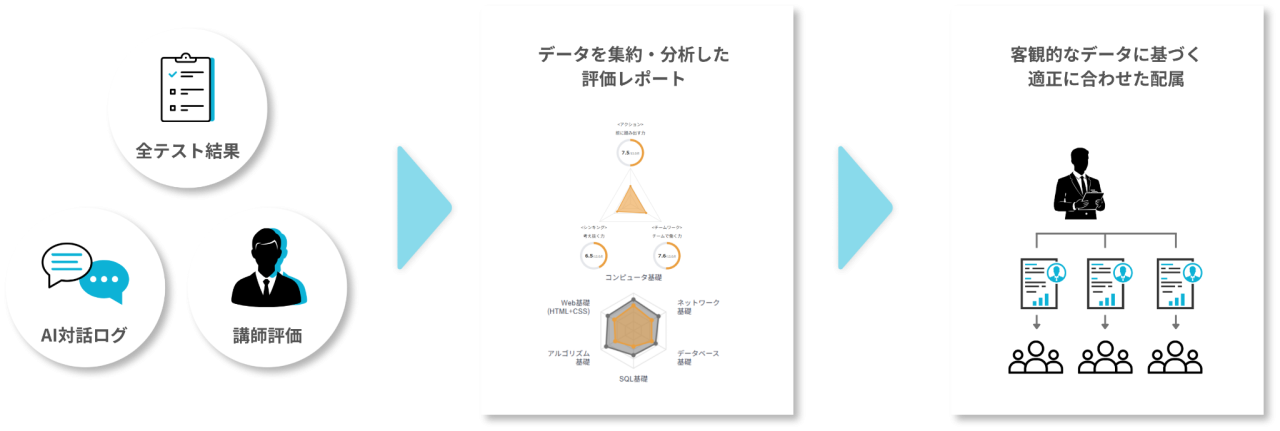 学習・対話データをAIが分析し、一人ひとりにパーソナライズされた配属へ。