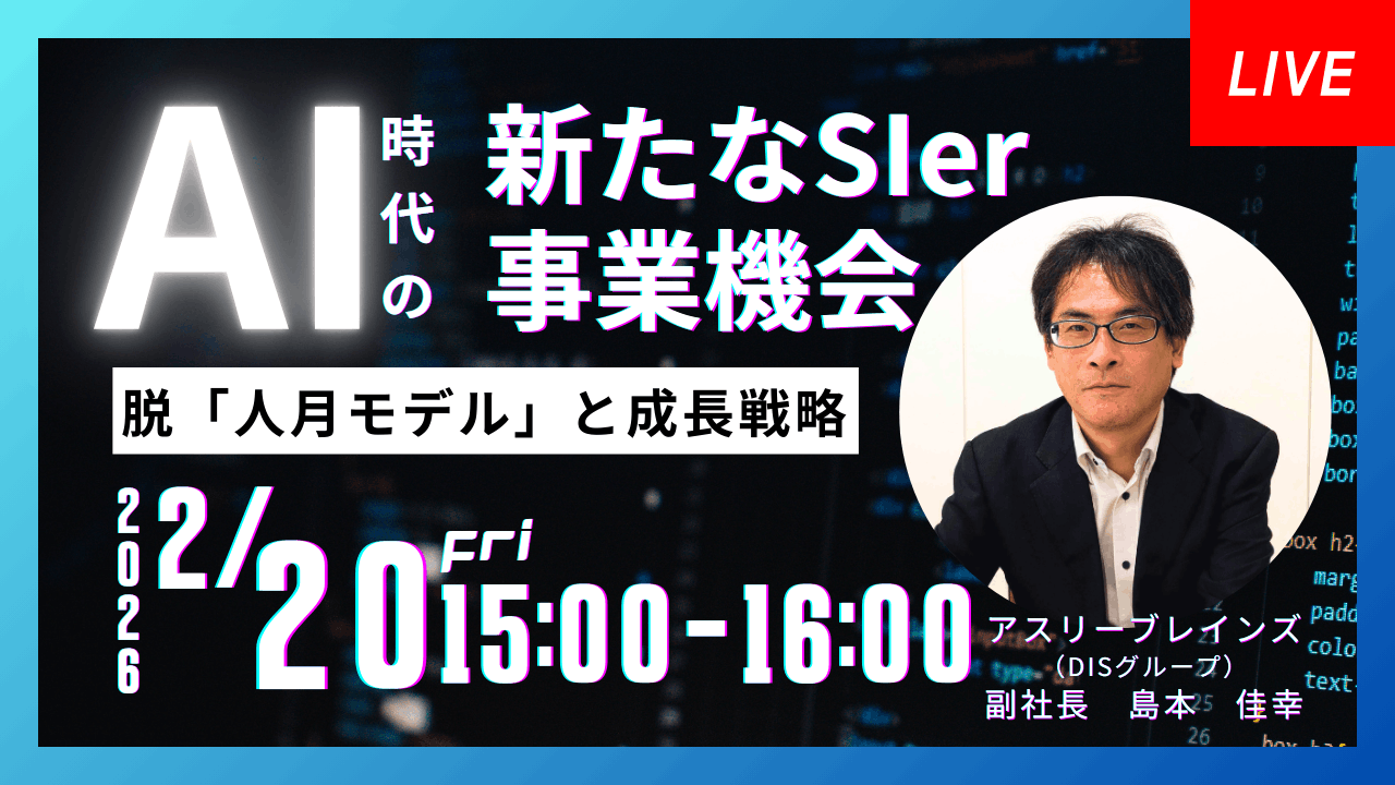 公開研修中小SIerのための「人月」からの脱出ルートと生存戦略2026年02月20日 15:00 ~16:00 開催形式: 料金:0円 申込締切日:2026年02月18日詳しくはこちら -